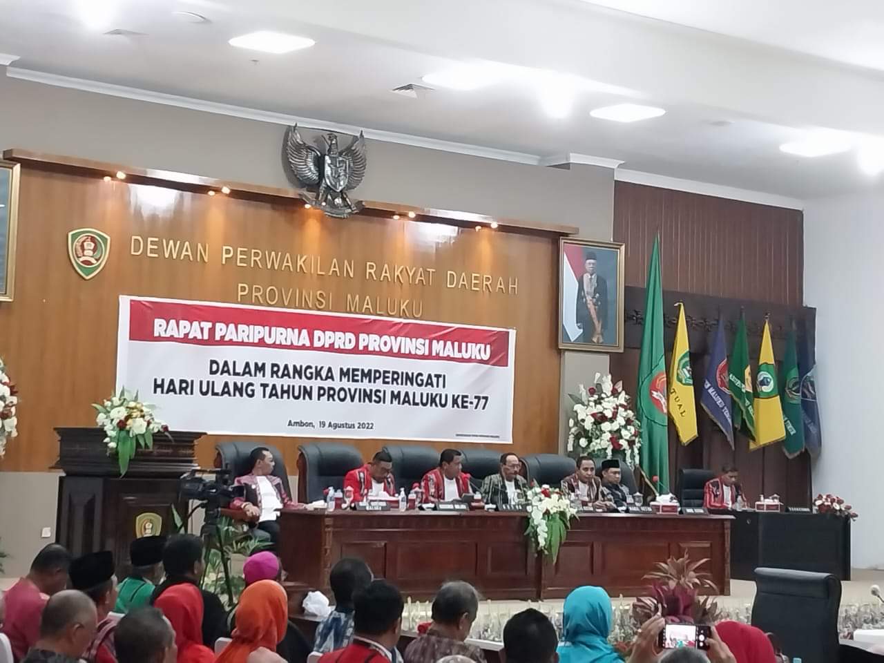 AMBON,TABAOSNews.Com.- Rayakan Hari Ulang Tahun Provinsi Maluku ke 77 maka Dewan Perwakilan Rakyat Daerah(DPRD) Provinsi Maluku menggelar rapat paripurna yang dipimpin ketua DPRD Maluku, Lucky Wattimury.