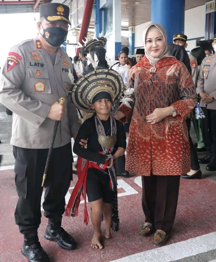 Merasa takjub dengan penampilan Aprillio yang memukau, Kapolda dan Ibu Ketua Bhayangkari Daerah Maluku, langsung menghampirinya usai menari.