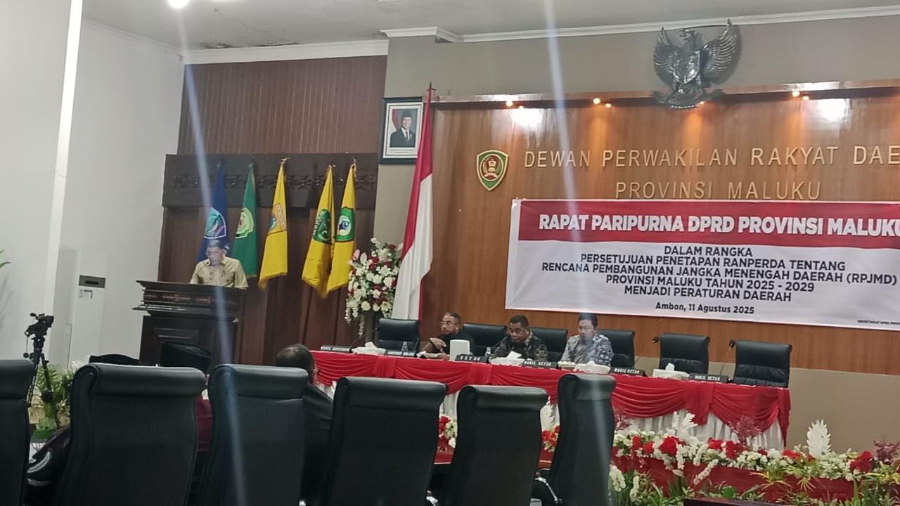 AMBON,TABAOSNews.Com.- DPRD Provinsi Maluku menyetujui Rancangan Peraturan Daerah tentang Rencana Pembangunan Jangka Menengah Daerah (RPJMD) 2025–2029 untuk ditetapkan menjadi peraturan daerah.