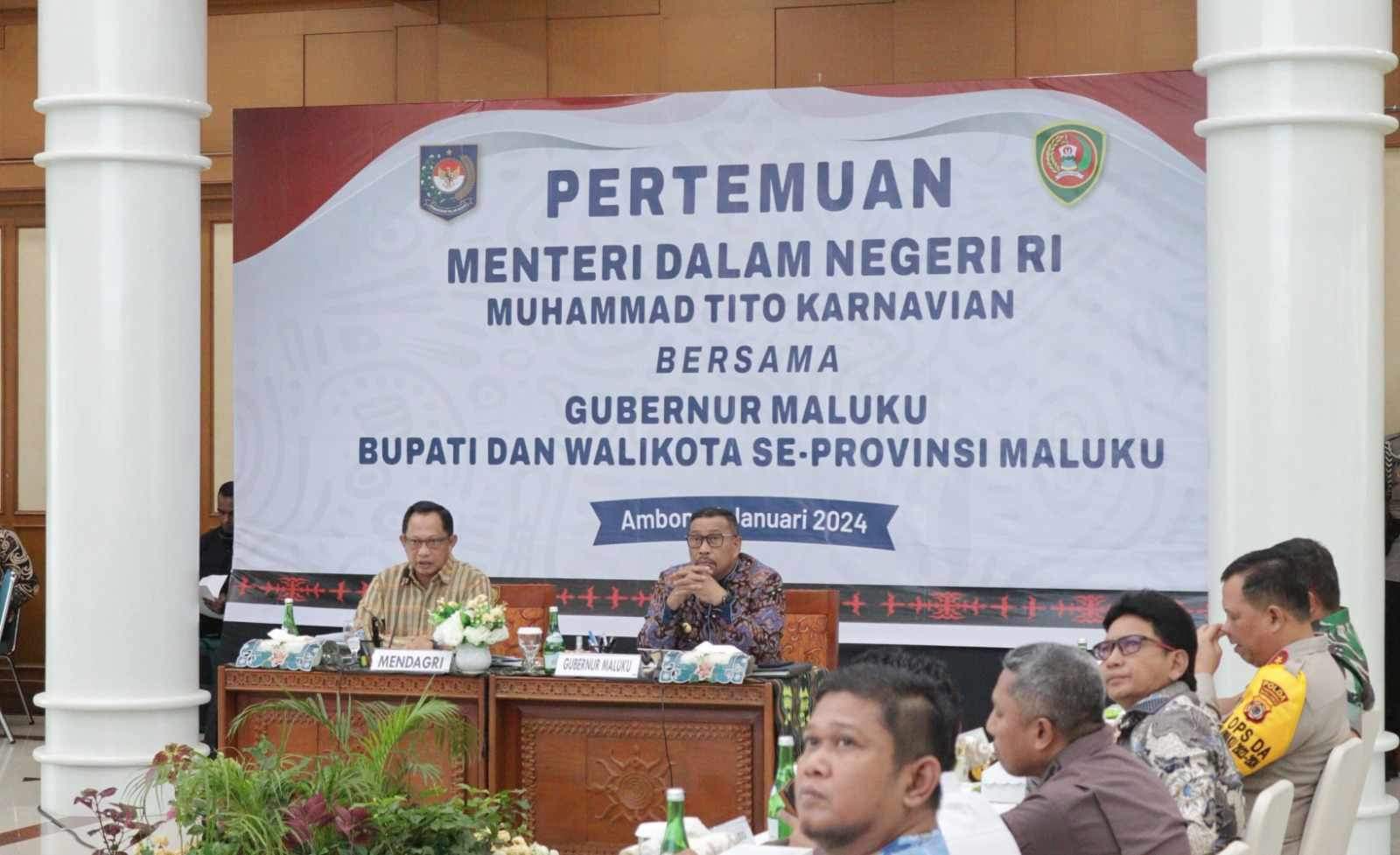 AMBON,TABAOSNews.com.- Menteri Dalam Negeri Republik Indonesia Jenderal Pol (Purn) Prof. Drs. H. M. Tito Karnavian, M.A., Ph.D, pada Kamis (11/01/2024) melaksanakan kunjungan kerjanya di Provinsi Maluku, dalam rangka memimpin Rapat Koordinasi Kepala Daerah se-Provinsi Maluku Tahun 2024, yang berpusat di Aula Lantai 7 Kantor Gubernur Maluku.