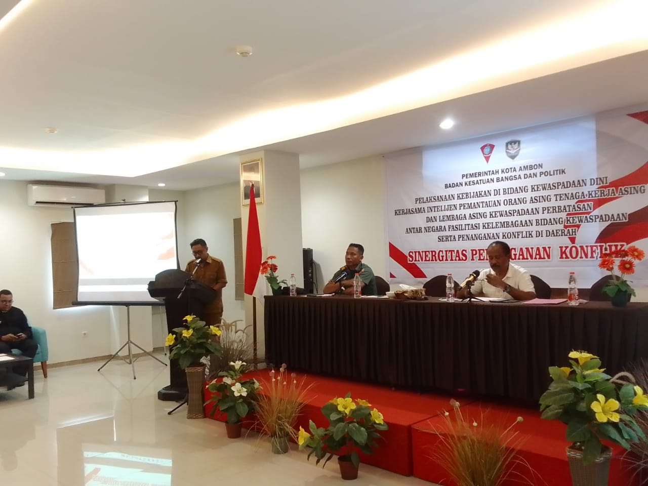 Demikian sambutan Penjabat (Pj) Walikota Ambon, Dominggus Kaya, ketika dibacakan Kepala Kesbangpol Kota Ambon, Yan Suitela, saat Pemerintah Kota Ambon melalui Badan Kesatuan Bangsa dan Politik (Kesbangpol), menggelar Kegiatan Sinergitas Penanganan Konflik, yang dilaksanakan di Biz Hotel Ambon, Selasa ( 02/07/24).