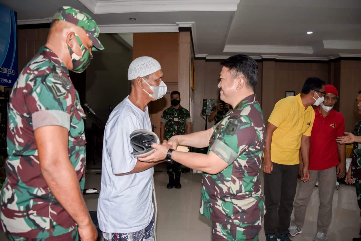 AMBON,TABAOSNews.com,- Pangdam XVI/Pattimura Mayjen TNI Richard Tampubolon melalui Kasdam XVI/Pattimura Brigjen TNI Asep Abdurachman serahkan bantuan kaki palsu kepada penyandang disabilitas di Lobby Makodam Pattimura, Senin (4/7/22).