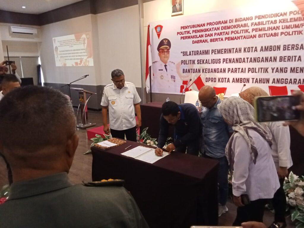 Acara itu sendiri dirangkaikan dengan Penandatanganan Berita Acara Penyaluran Bantuan Keuangan Partai Politik yang Mendapatkan Kursi DPRD Kota Ambon Tahun Anggaran 2024.