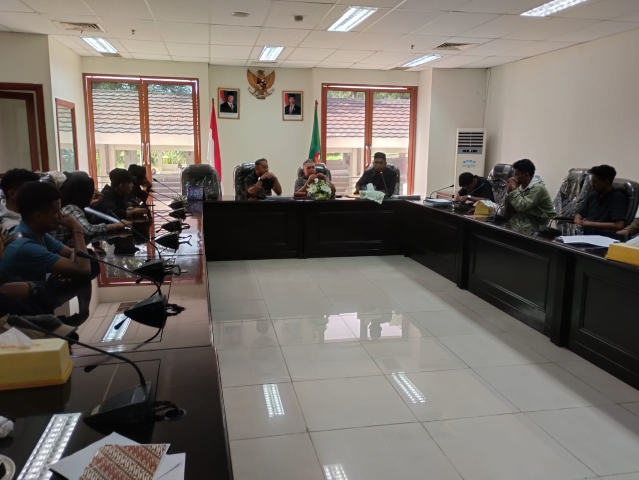 Aksi tersebut diterima oleh Wakil Ketua DPRD Maluku, Fauzan Rahawarin dan Richard Rahakbauw, di ruang Komisi II DPRD Maluku.