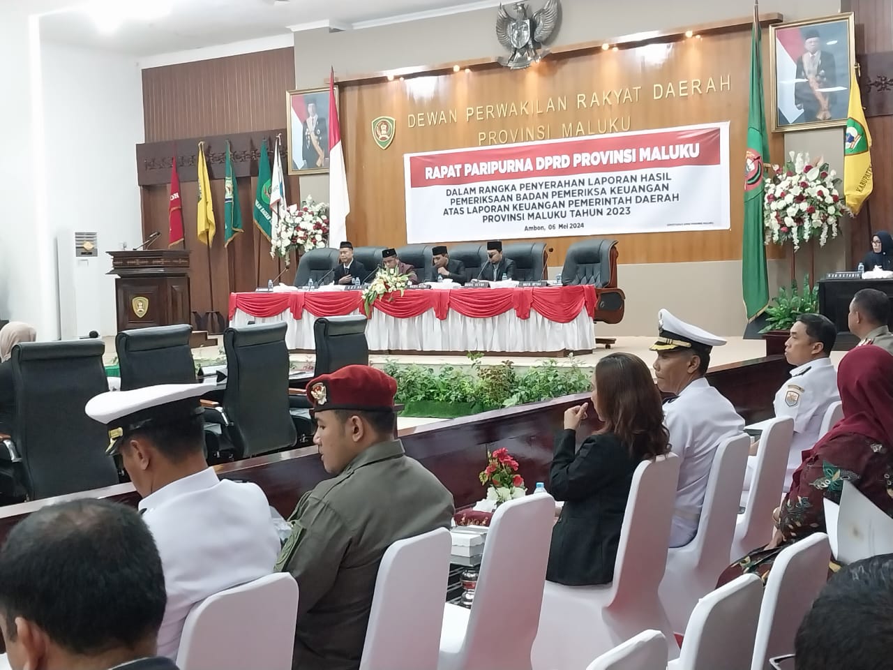 AMBON,TABAOSNews.Com.- DPRD Provinsi Maluku, menggelar paripurna dalam rangka penyerahan laporan hasil pemeriksaan Badan Pemeriksa Keuangan atas laporan keuangan pemerintah daerah Provinsi Maluku tahun 2023 dipimpin Ketua DPRD Provinsi Maluku, Benhur George Watubun, dihadiri wakil ketua, Melkianus Sairdekut, Asis Sangkala, anggota DPRD, BPK Perwakilan Provinsi Maluku , Forkopinda dan undangan lainnya.