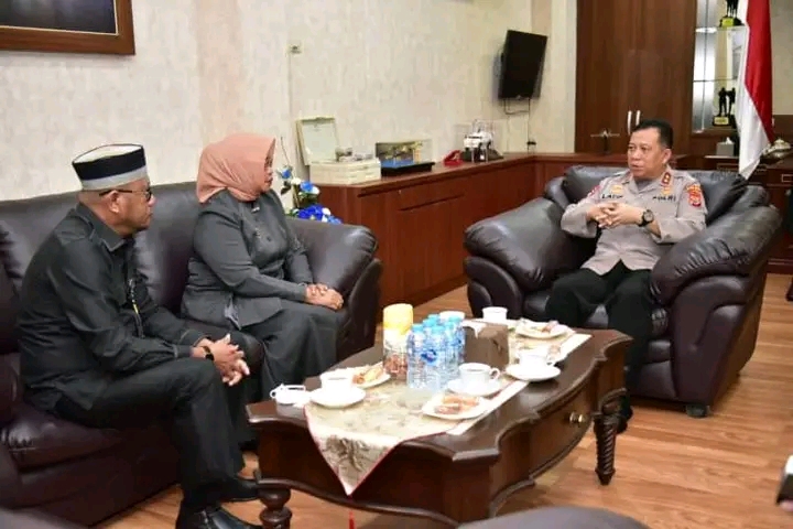 AMBON,TABAOSNews.Com.- Ketua Badan Pengawasan Pemilihan Umum (Bawaslu) Provinsi Maluku, Astuti Usman dan Koordiv Penanganan Pelanggaran Thomas Tomalatu Wakanno sowan ke Kapolda Maluku Irjen Pol Lotharia Latif.