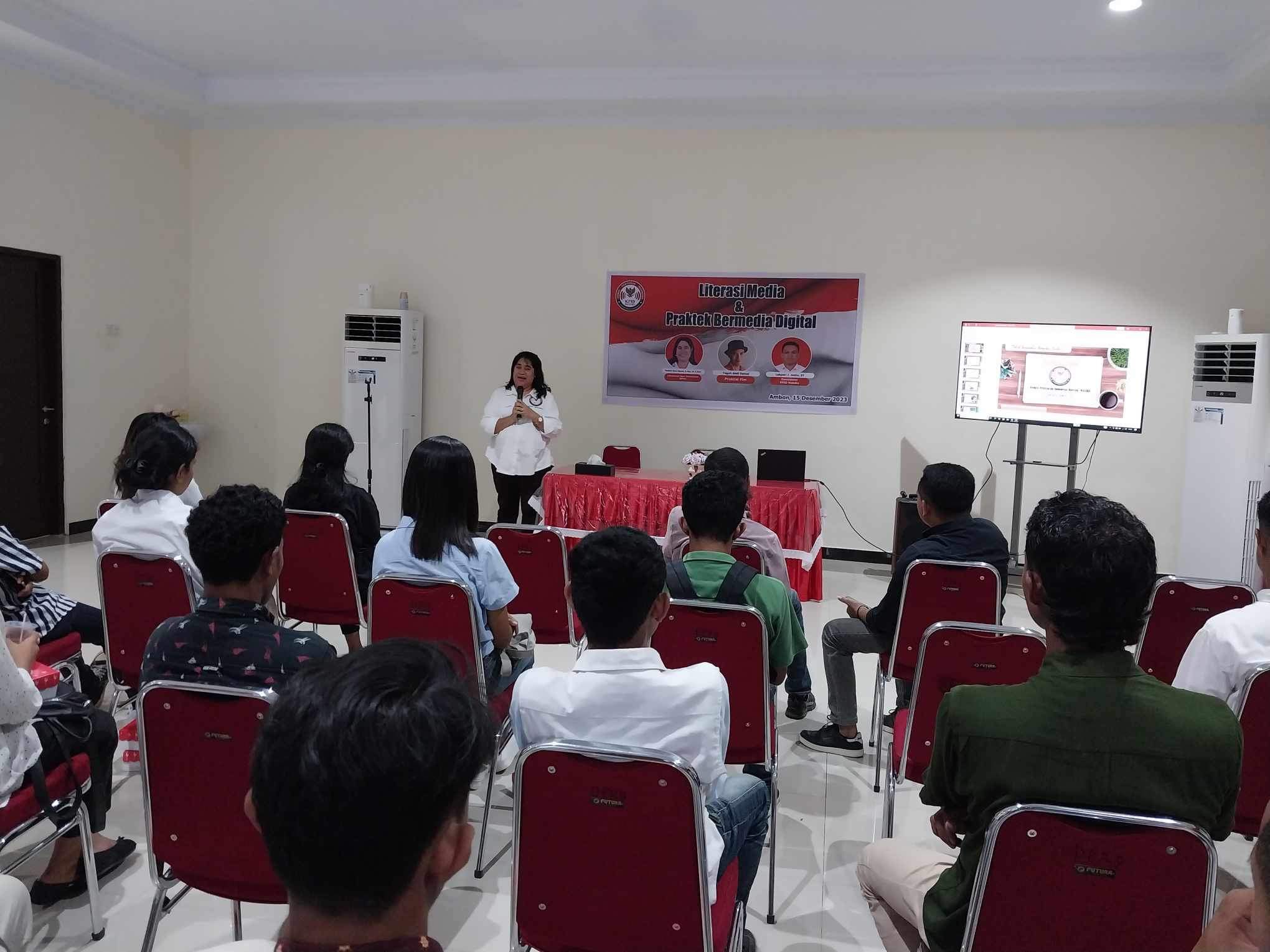 AMBON,TABAOSNews.com.- Komisi Penyiaran Daerah Maluku, menggelar Literasi media dan praktek bermedia digital kepada kaum milineal dari unsur mahasiswa dan pemuda dengan menghadirkan, Ketua Komisi Penyiaran Daerah Maluku, (KPID), Mutiara Dara Utama, Teguh Abdi Damai, praktisi Film dan Komisioner KPID, Lekperi .J .Amtu, sebagai narasumber yang digelar di Ambon, Jumat (15/12).